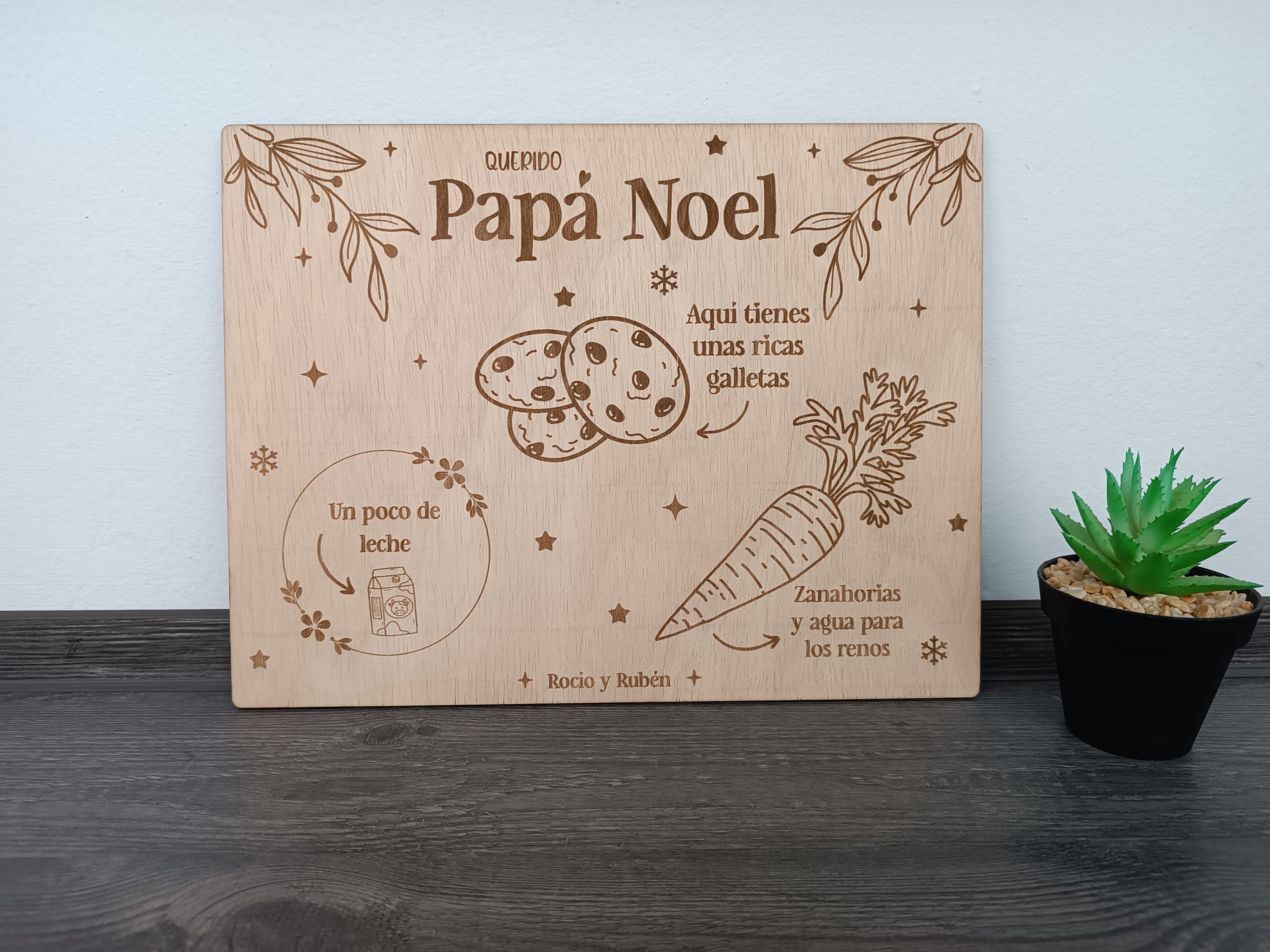 Con esta bandeja personalizada puedes agradecer la visita a Papá Noel esta Navidad, dejándole leche, tus galletas favoritas, y zanahorias para los renos. Esta Bandeja para Papá Noel les hará mucha ilusión a los más peques de la casa.