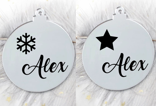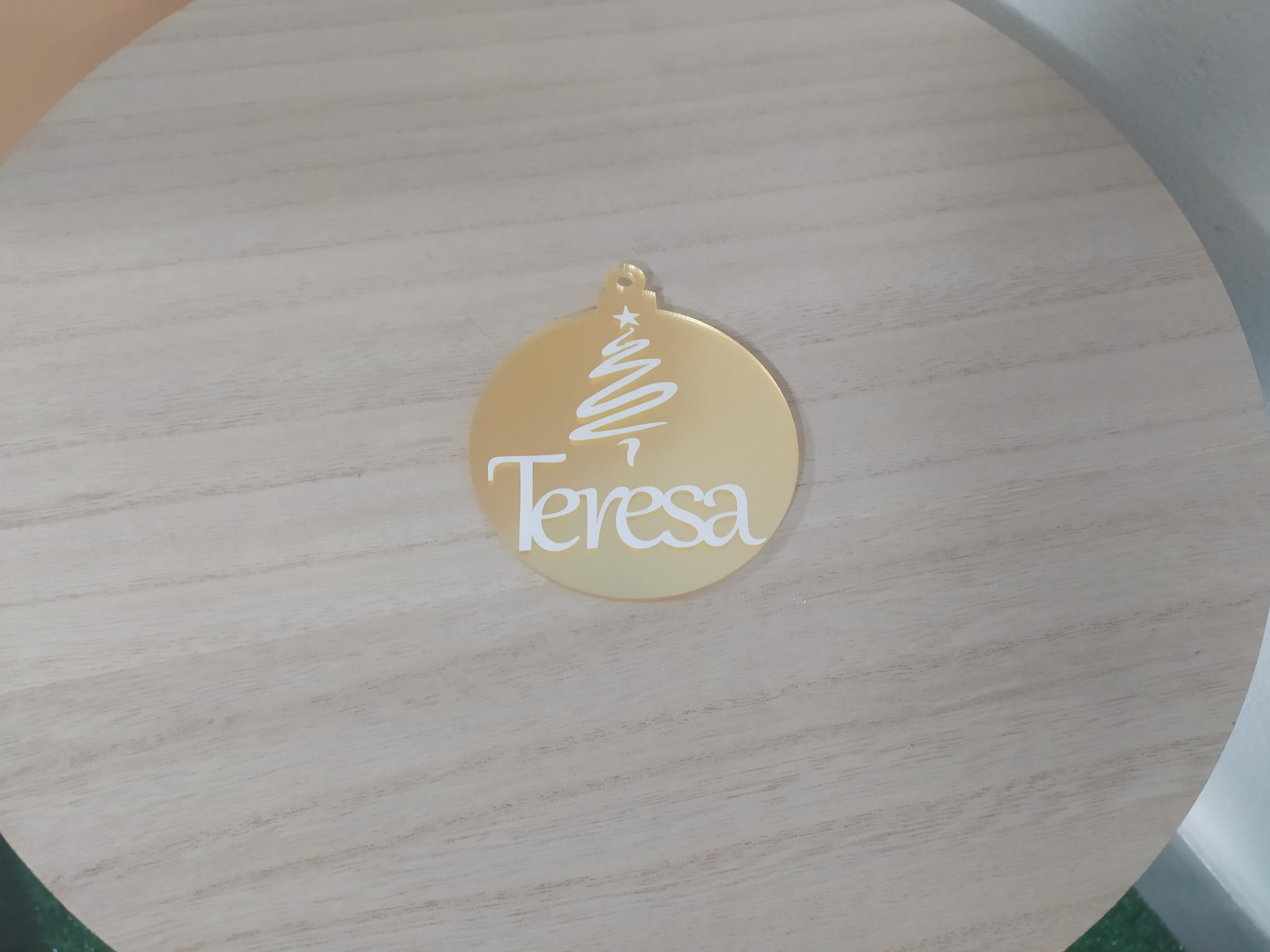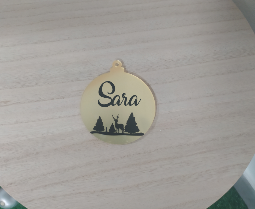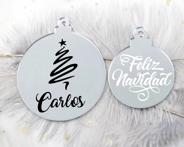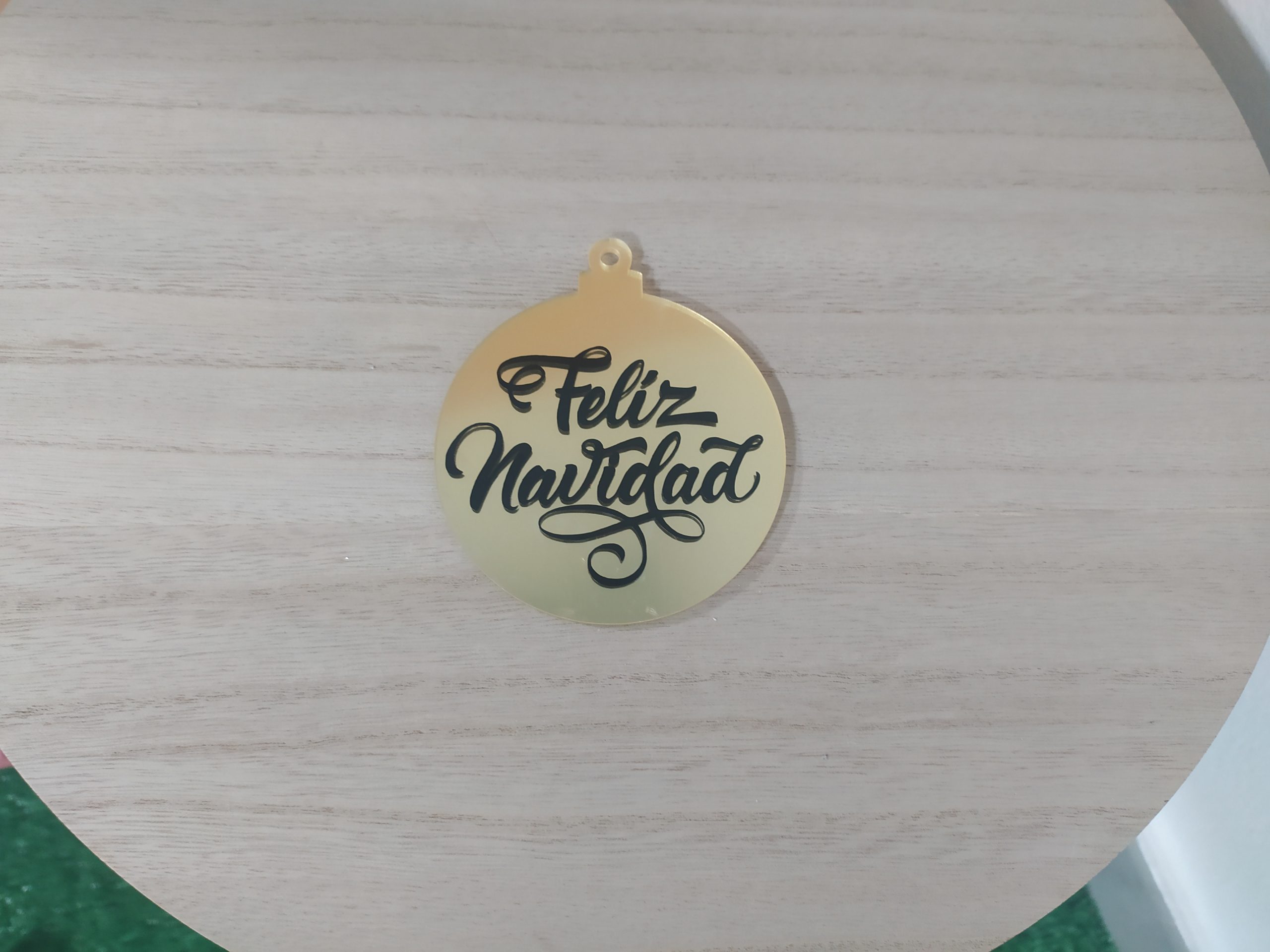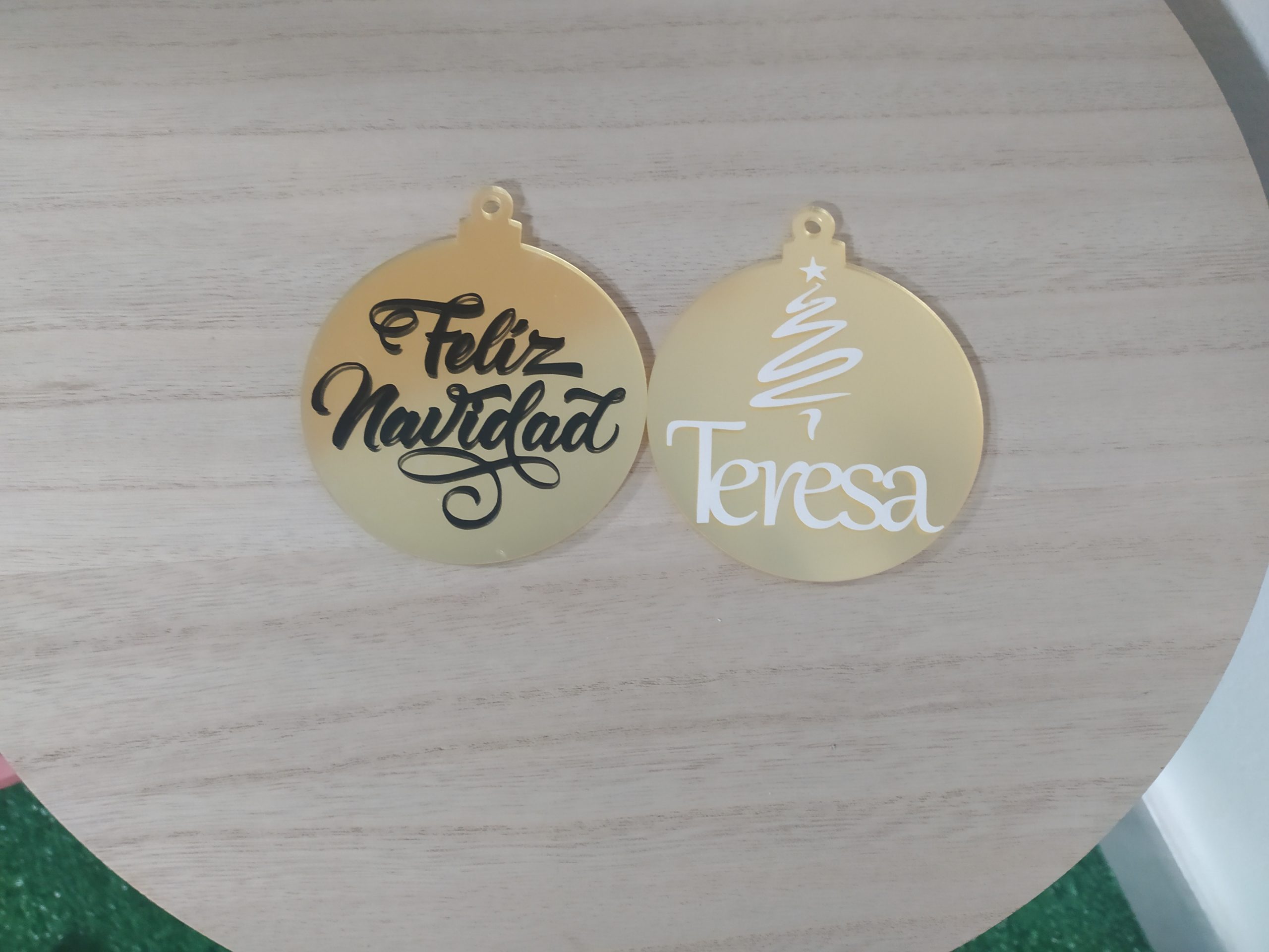 Bola de Navidad realizada con acrílico efecto espejo (rosa, oro, plata) o transparente.