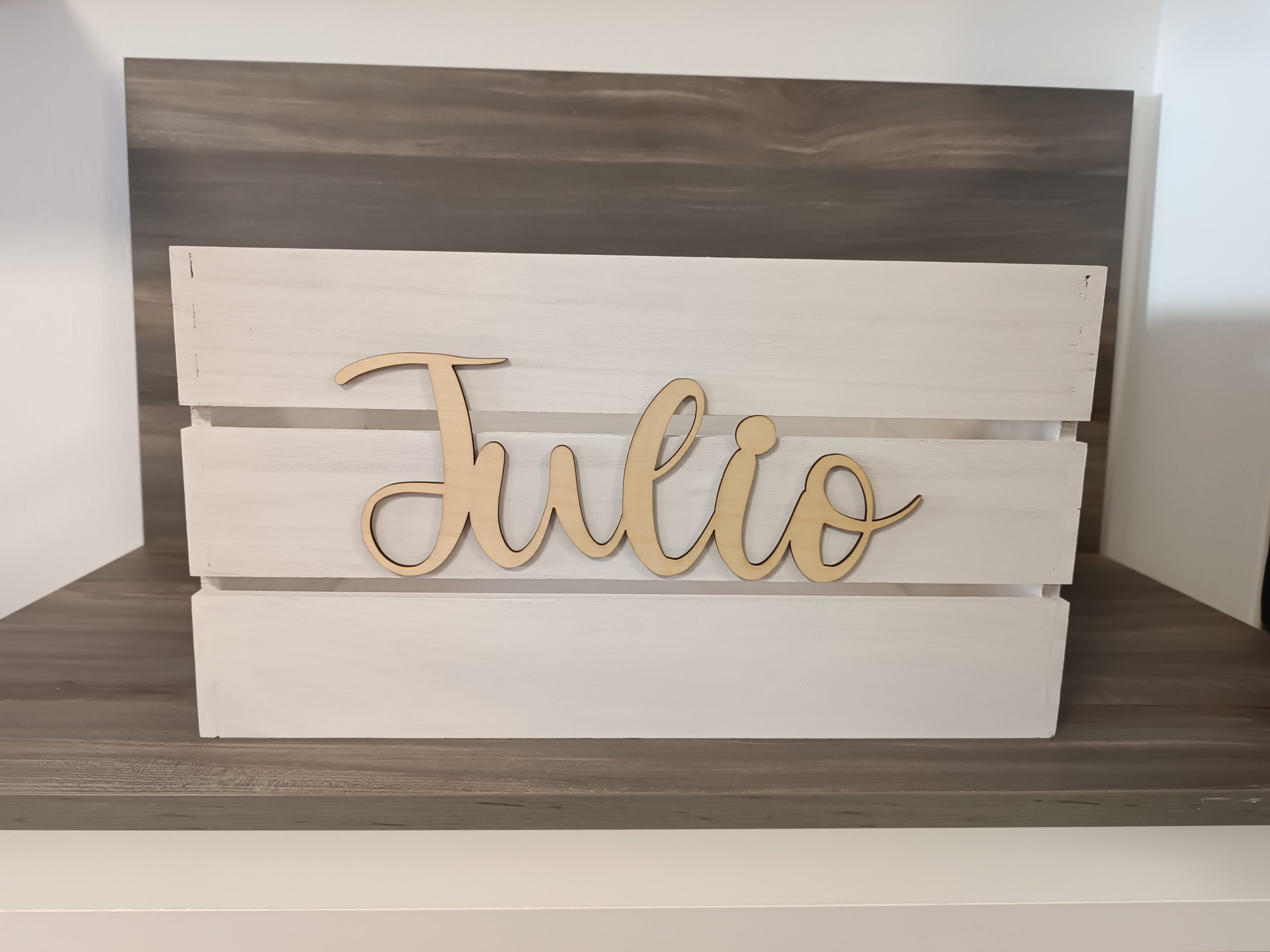 Fabricamos en varios colores tanto la caja como el nombre, por lo que, puede elegir lo que mejor se adapte con su decoración.