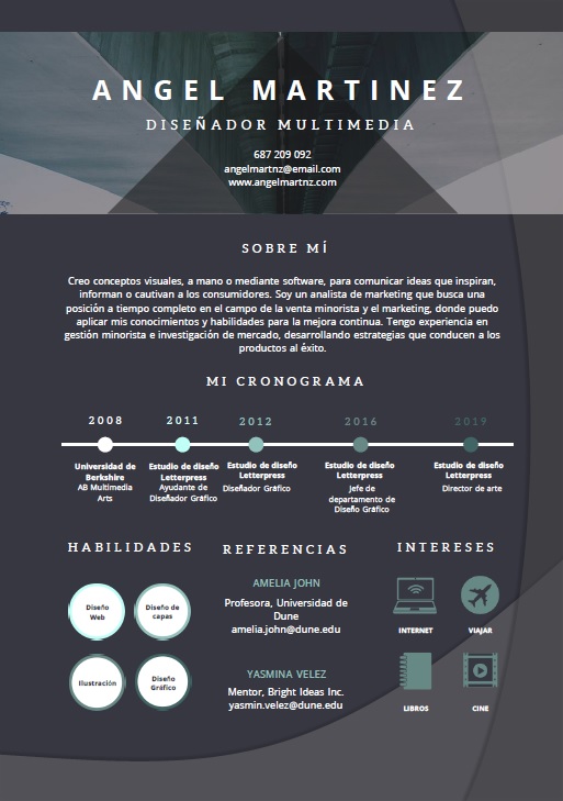 Currículum personalizado, elige: Estilo, diseño, color, etc.