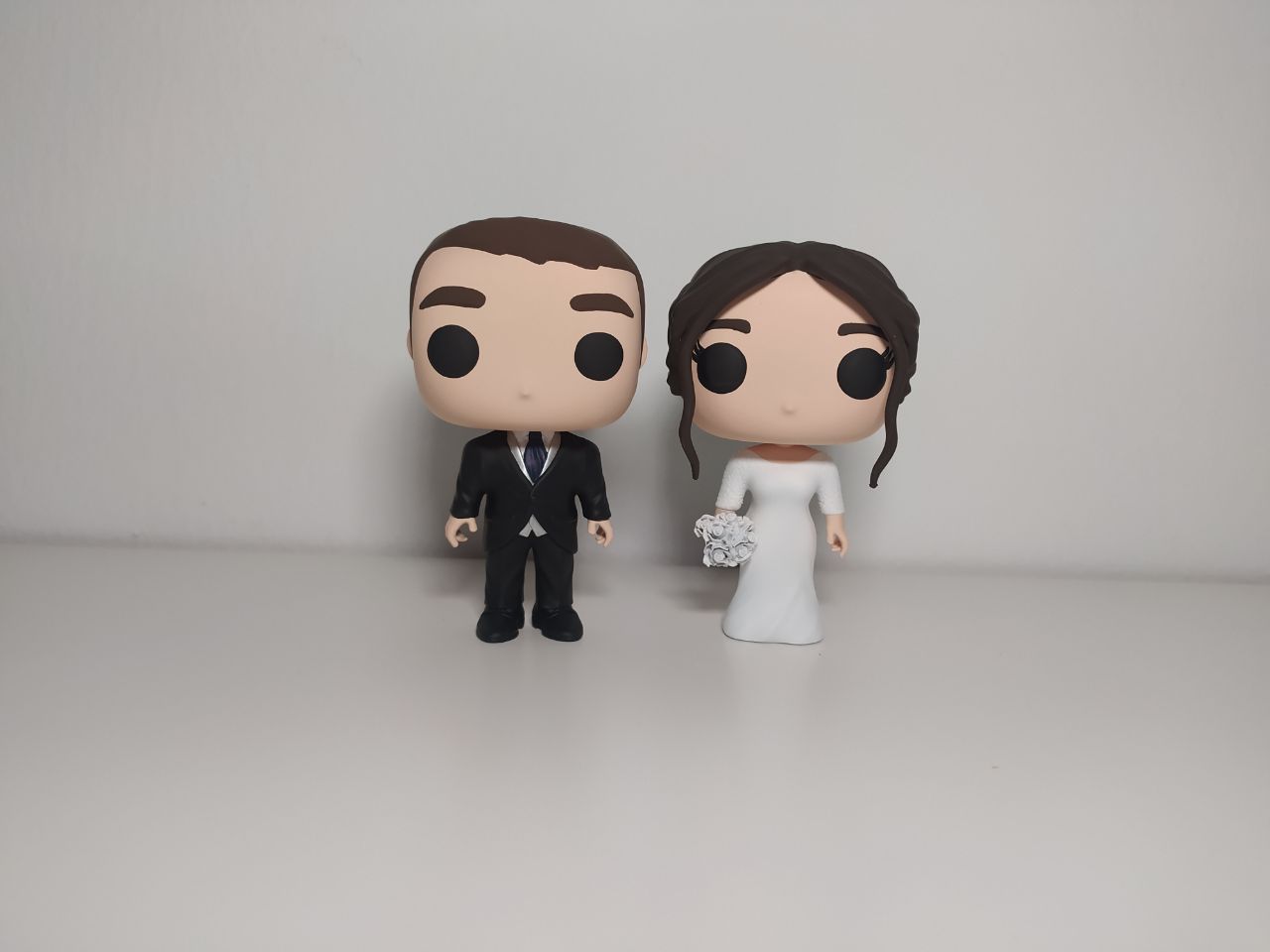👰♀️ Figuras personalizadas estilo Pop para novios. Crea un recuerdo único de vuestro gran día con todos los detalles: trajes, peinados y complementos especiales.