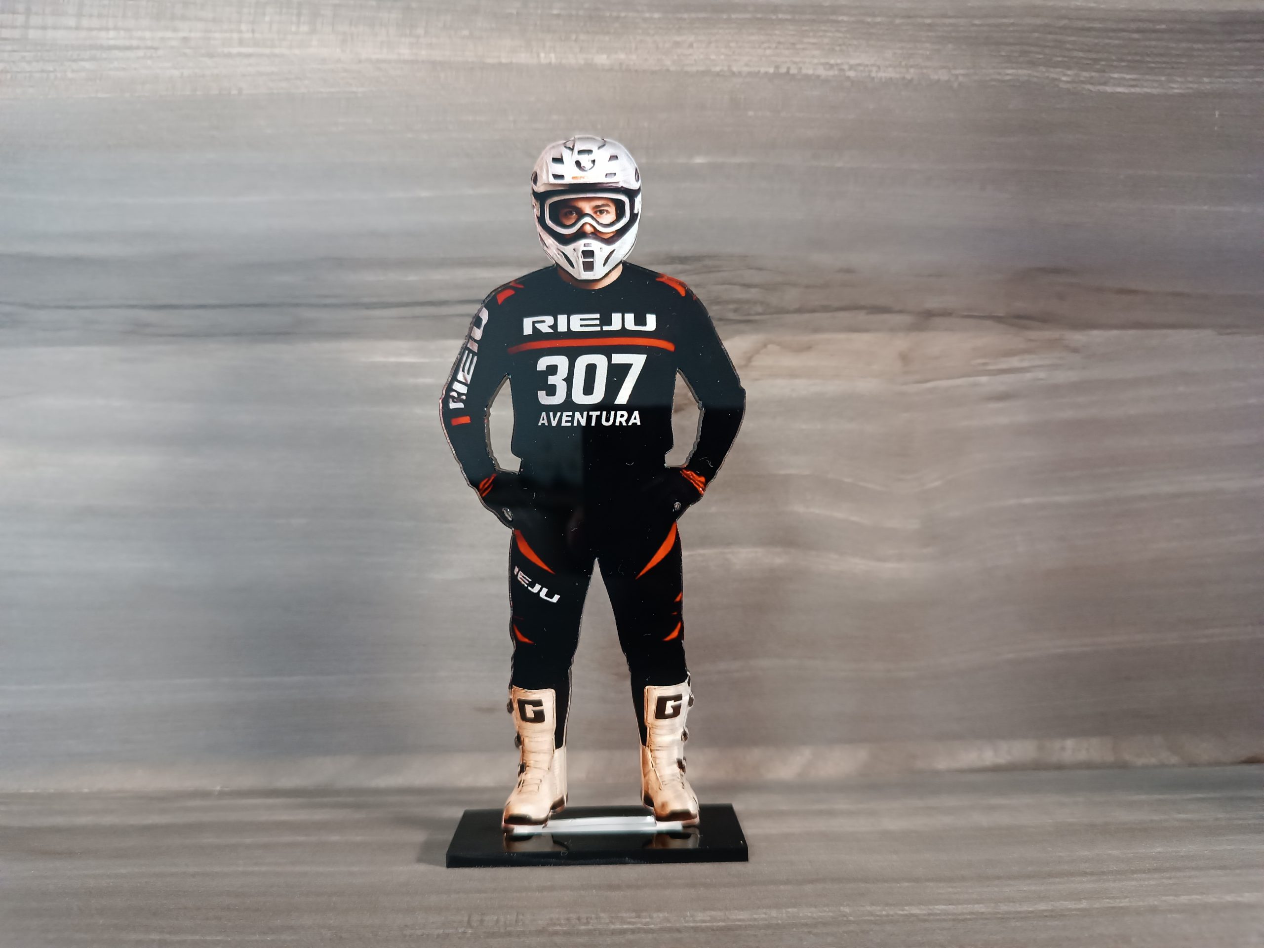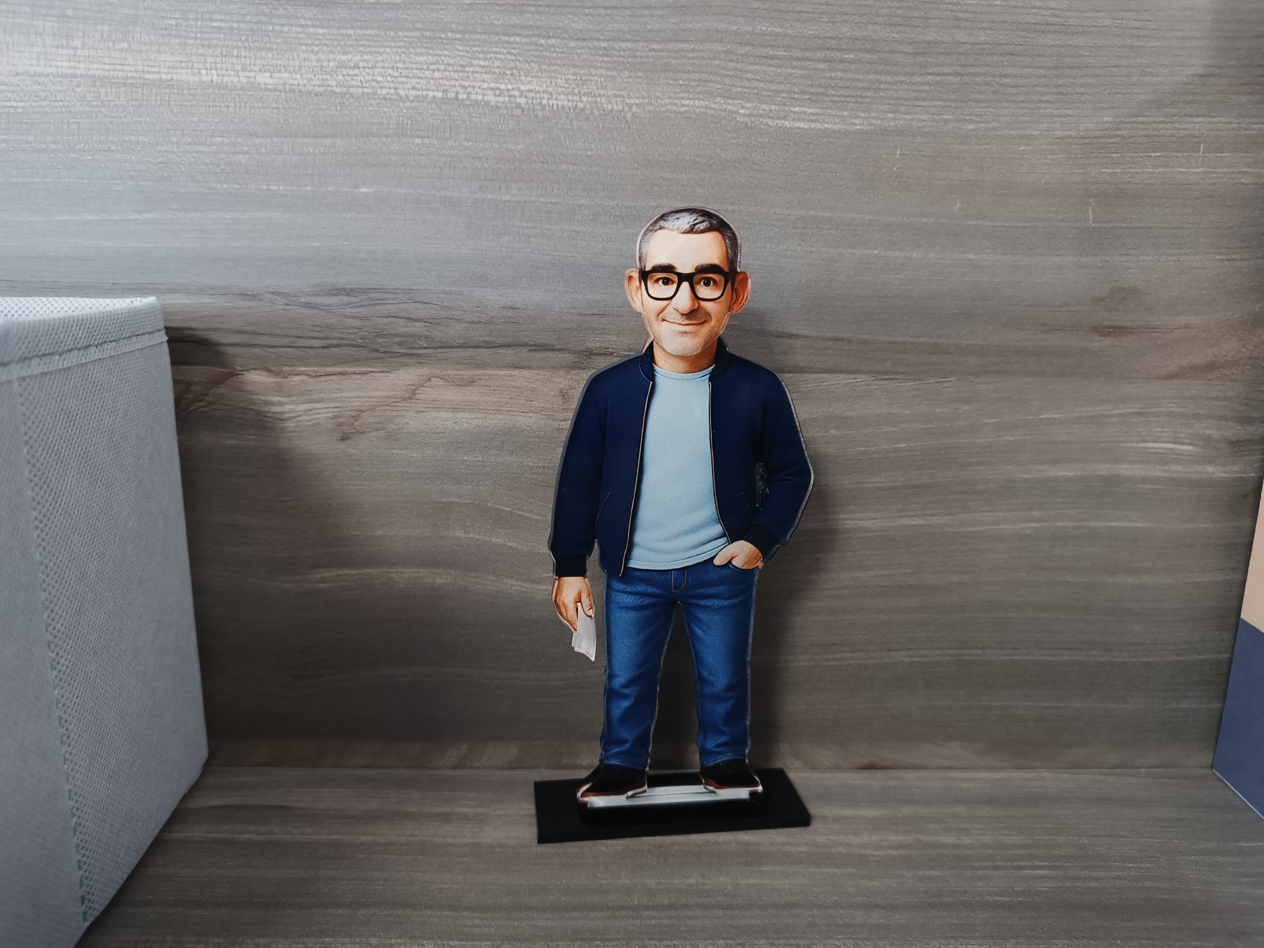 Creamos figuras personalizadas estilo realista a partir de una fotografía, en metacrilato 2D. Diseñadas con detalle y hechas completamente a medida para bodas, comuniones, profesiones, parejas, mascotas, hobbies y mucho más.