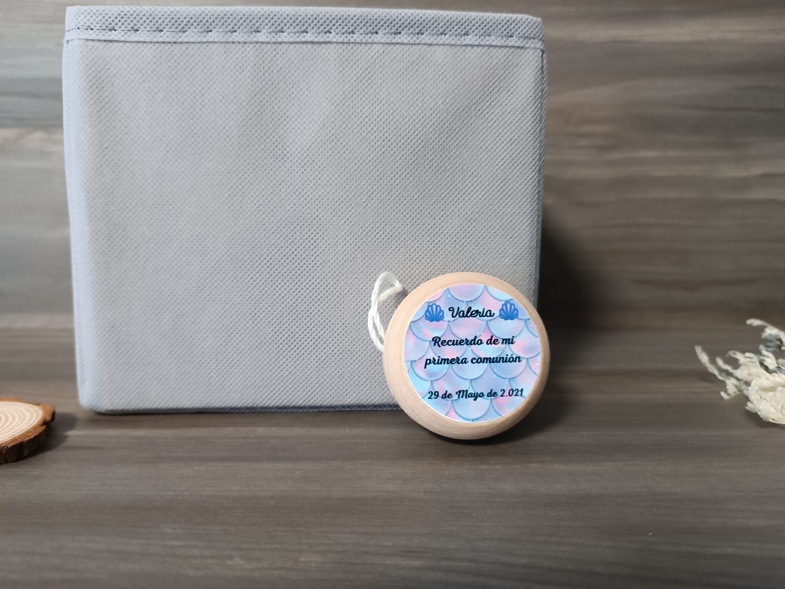 ¿Quién no ha rodado nunca un yoyó? Un juego tradicional, personalizado y adaptado al siglo XXI… así son estos yoyós, en madera natural con grabado láser que puedes personalizar con el nombre de los invitados, será un recuerdo bonito y divertido para los más peques.