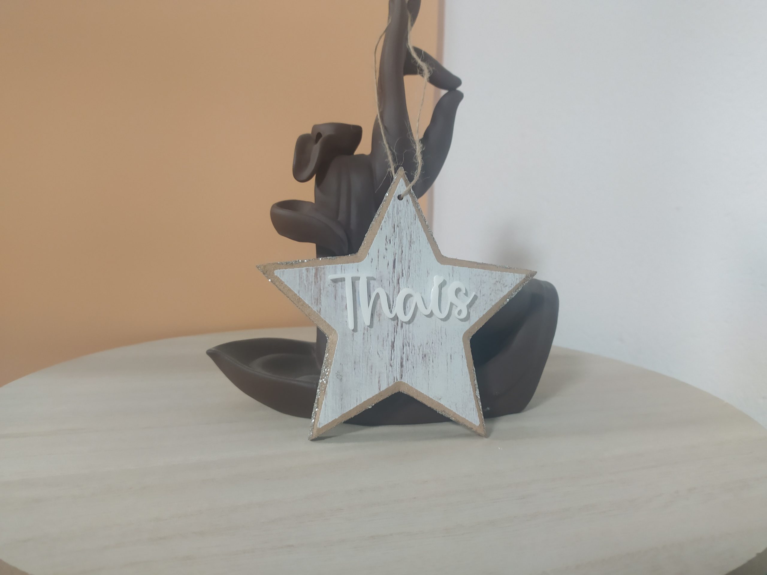 Estrella de madera con nombre personalizado.