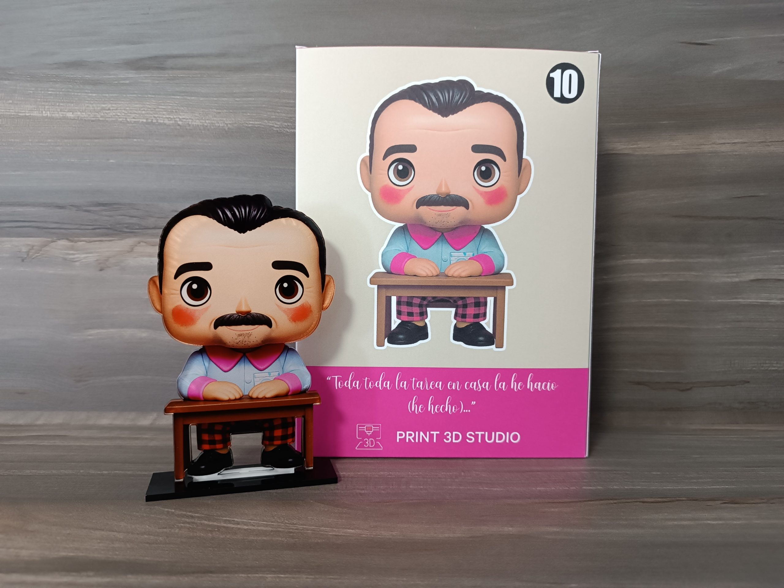 Caja personalizada con frase representativa.