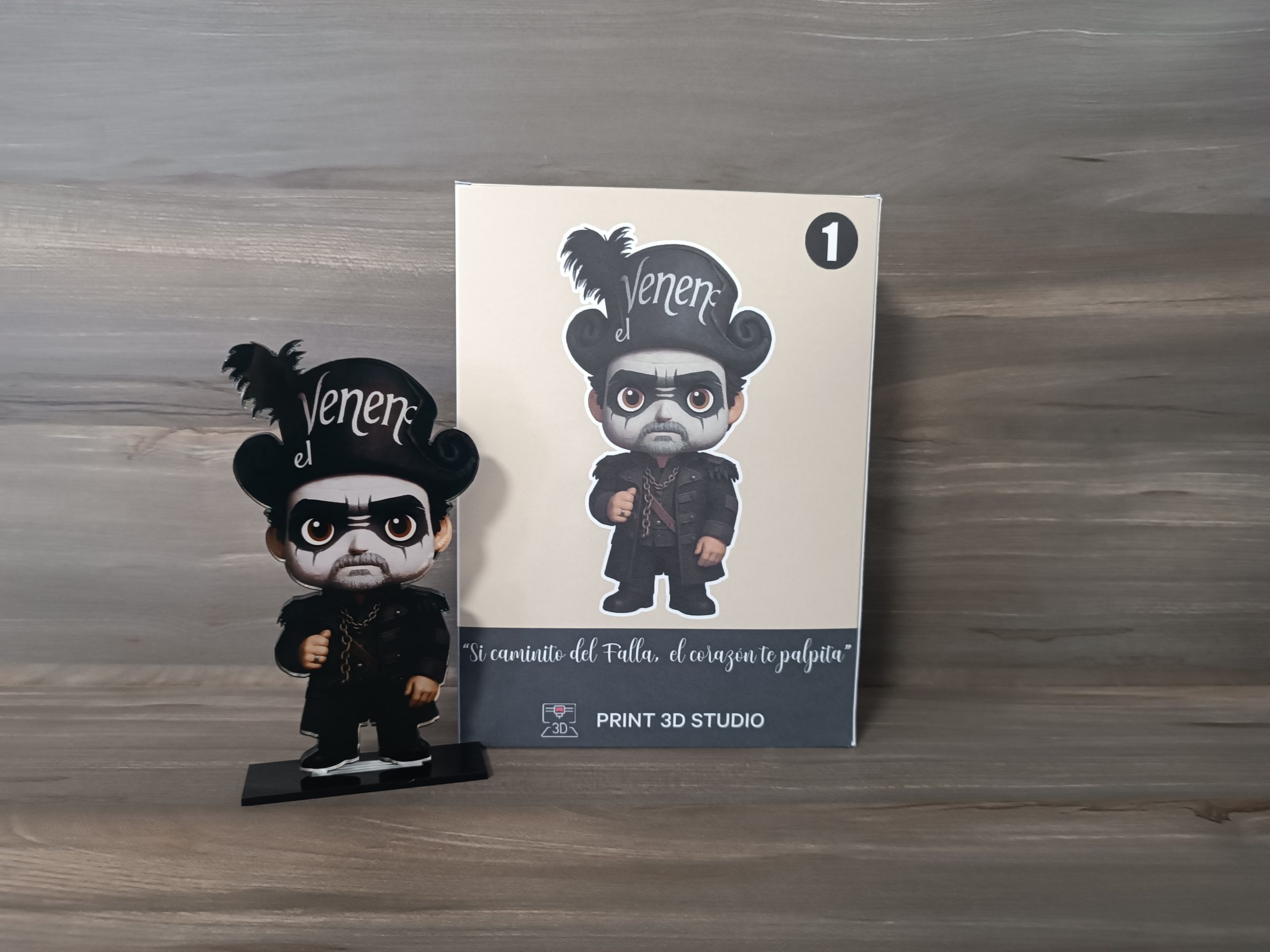 Cada figura está elaborada en metacrilato impreso a todo color, con una base negra y una caja personalizada que incluye nombre, agrupación y una frase mítica emblemática.