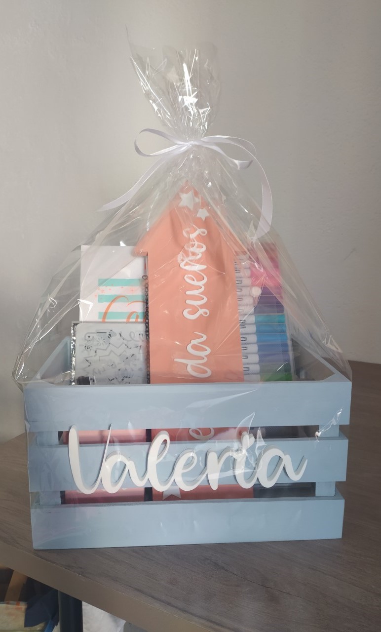 Kit cajas personalizadas, disponibles en cualquier temática y para cualquier edad, contacta con nosotros, y coméntanos para qué edad es lo que necesita, con qué temática (planetas, lettering, lectura, personaje, música, etc.), cantidad de productos en el interior de la caja, personalización (color, nombre, frase, etc),…