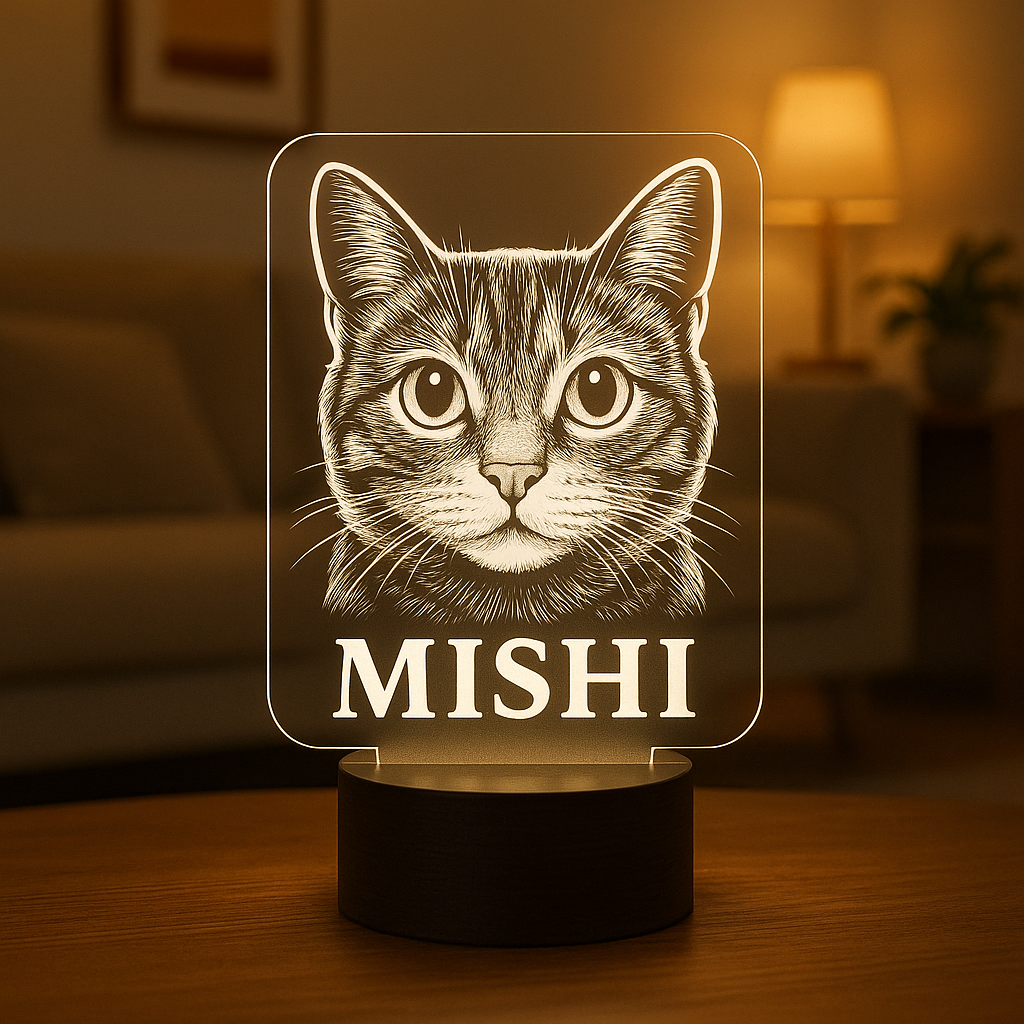 Ilumina tus espacios con el amor incondicional de tu mascota. La lámpara personalizada en metacrilato es una pieza decorativa única que combina diseño elegante con un toque cálido y personal. Grabada con precisión en acrílico de alta calidad, presenta el rostro de tu fiel compañera y su nombre en un acabado brillante que resalta con una suave luz LED cálida. Ideal para salones, dormitorios o como regalo especial para los amantes de los animales.