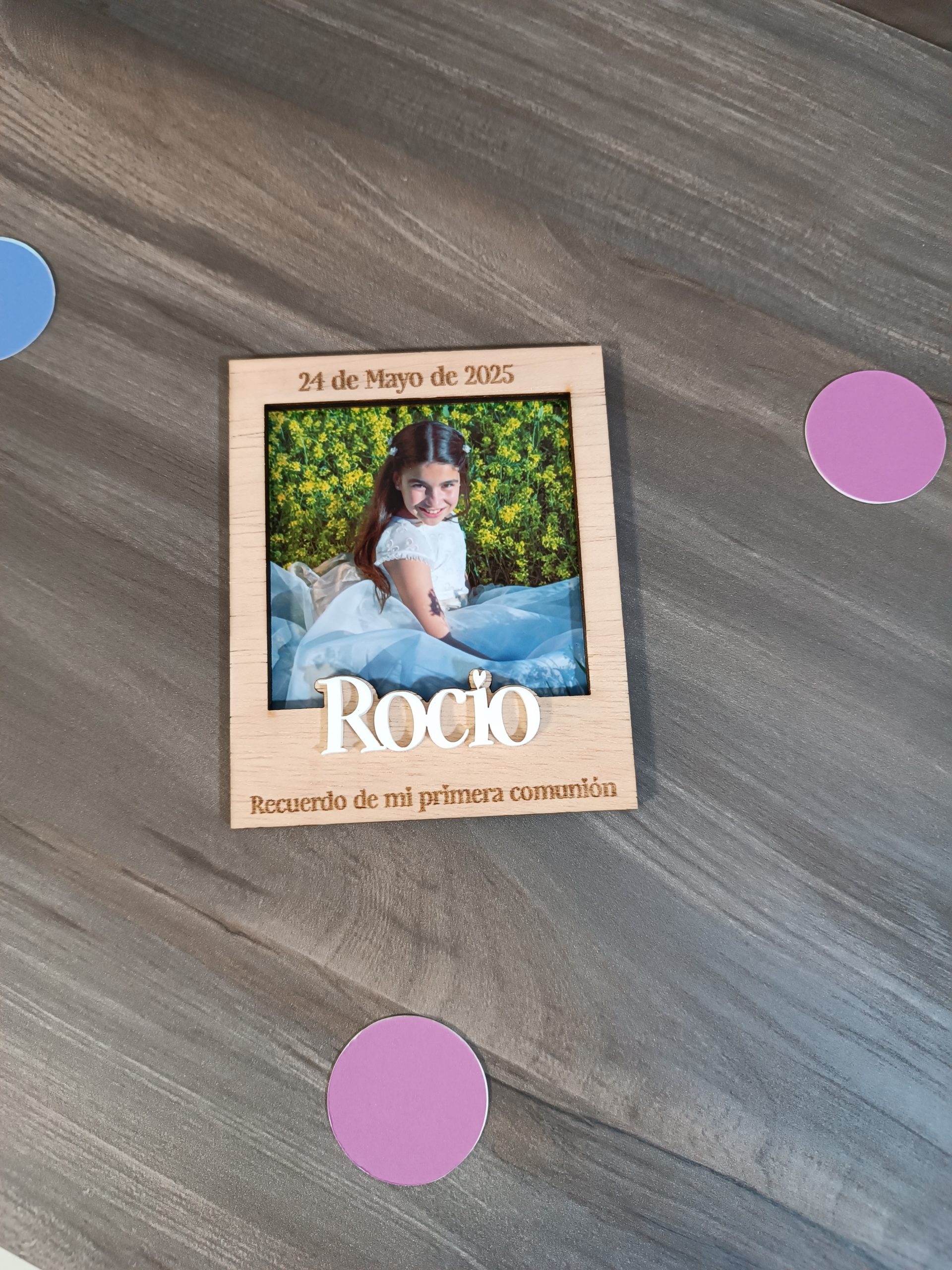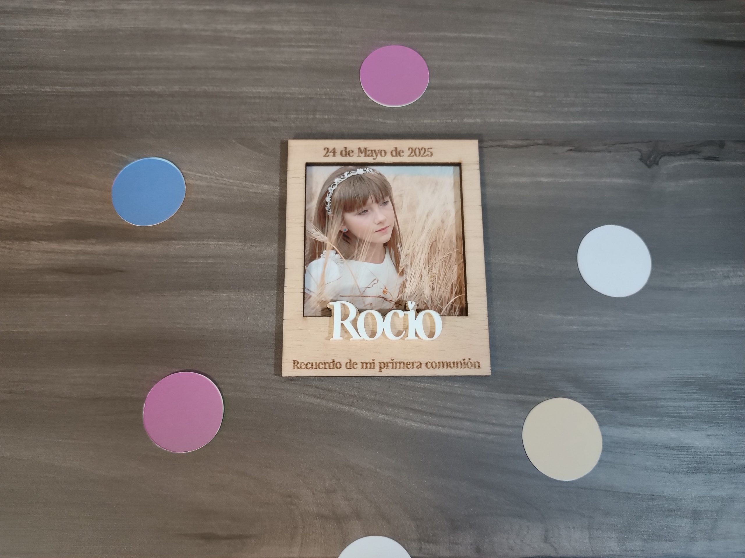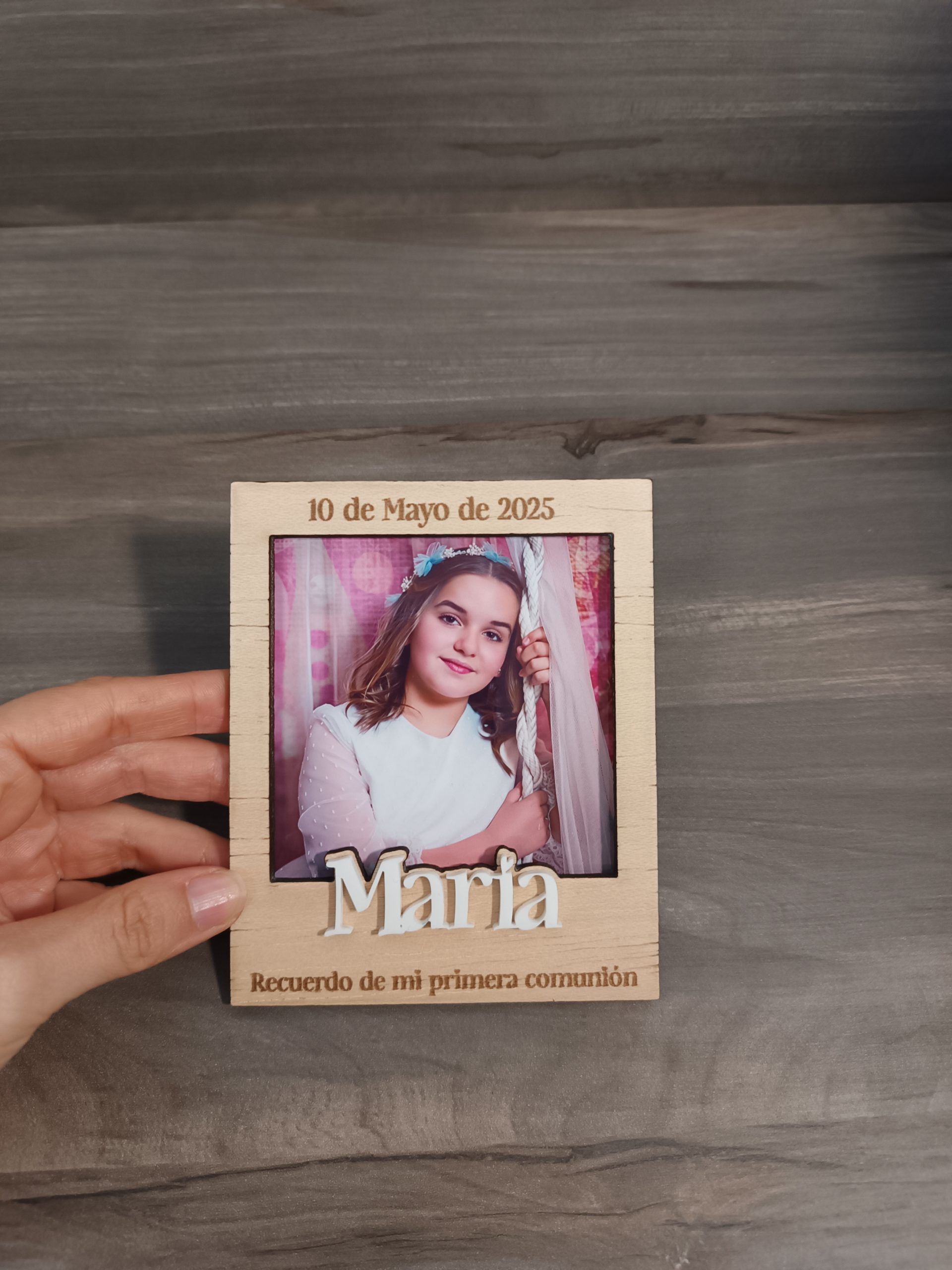 Este mini portafoto en madera personalizada es una hermosa pieza que captura momentos especiales. Diseñado con un acabado elegante, puedes grabar el nombre, evento y fecha que desees, convirtiéndolo en un recuerdo único. Es ideal para decorar cualquier espacio y revivir esos instantes memorables.