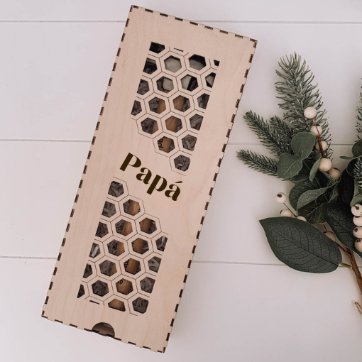 El martillo va metido en una bolsita de organza blanca. Disponibilidad de añadir la caja de madera (madera maple o contrachapado abedul).