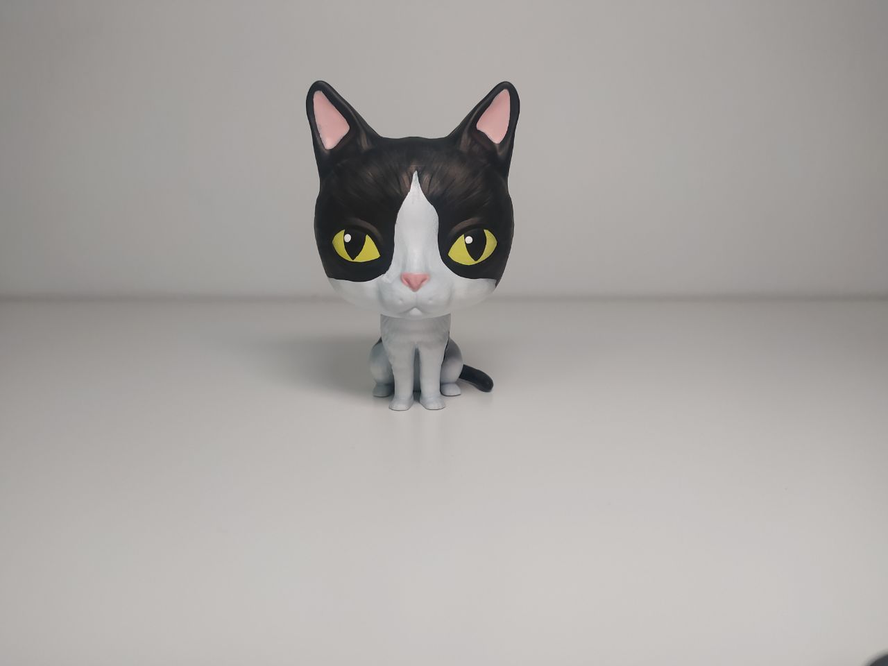 El producto consiste en el diseño e impresión de una figura completamente personalizada, más el pintado de la figura realizado a mano, basado en las fotografías de su mascota.