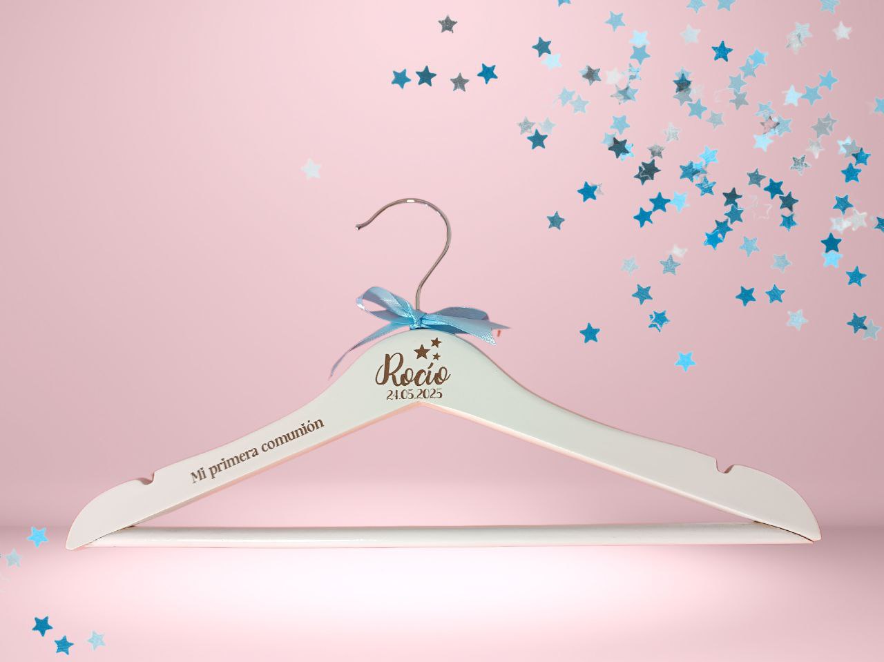 Se aproxima el gran día de tu peque, su Primera Comunión, y seguramente ya tenéis casi todo listo. Habéis elegido ya su vestido o traje, y fijo que es precioso. ¿Qué te parecería colgar ese traje o vestido en una bonita, original y personalizada percha?
