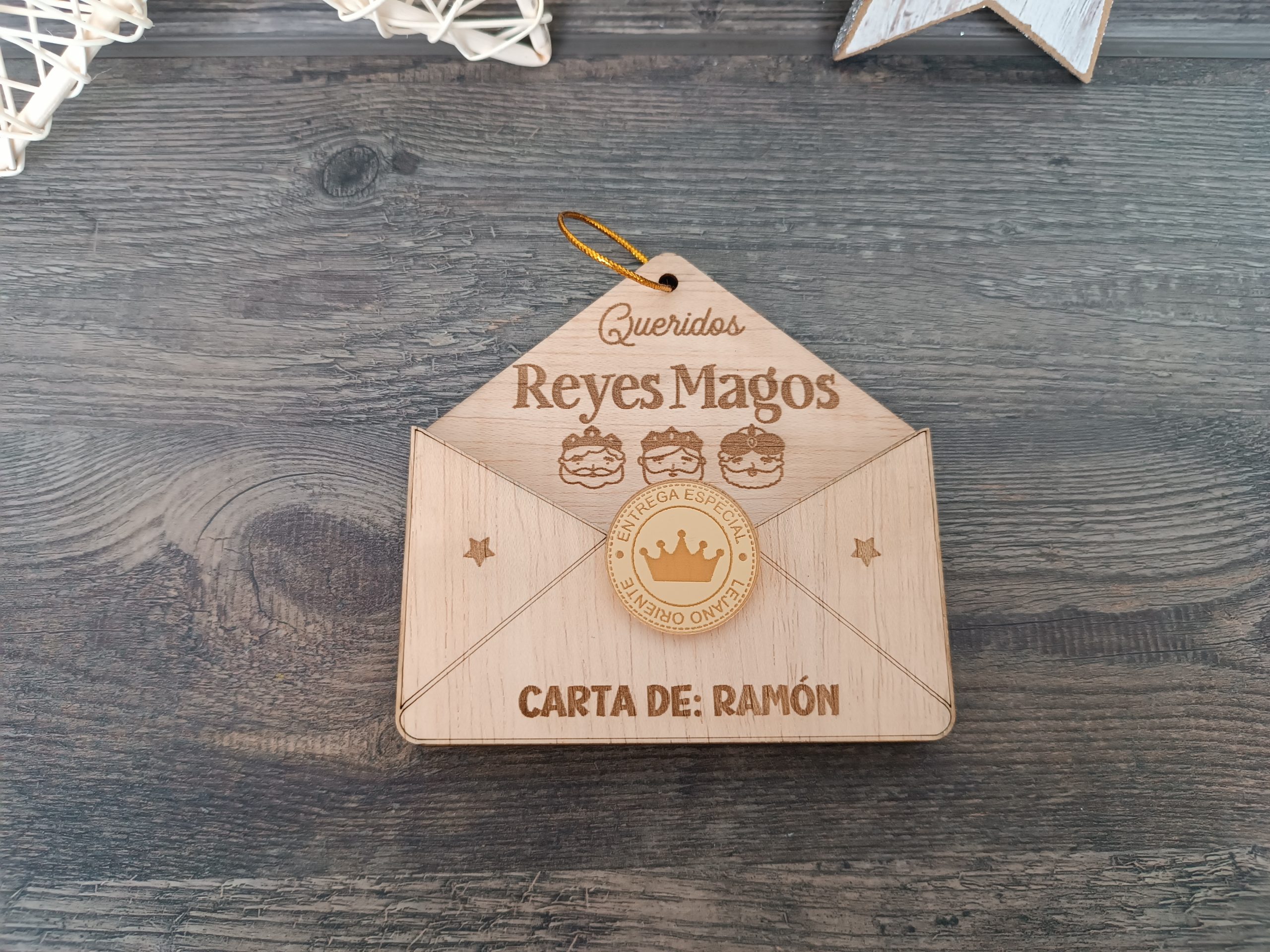 En este sobre de madera personalizado podréis colocar las cartas para los Reyes Magos de vuestros peques (y no tan peques). Preparad vuestra lista de deseos y dejad que surja la magia. Le dará un toque mágico y encantador a la decoración navideña.